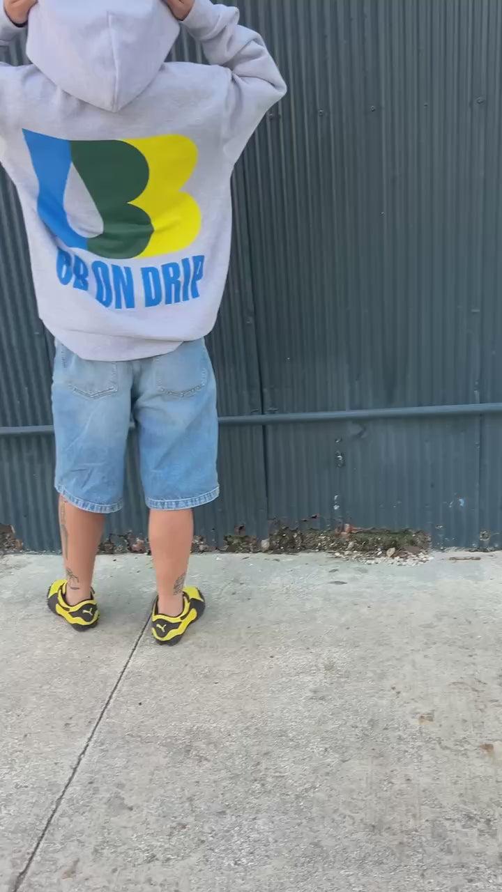 A heavyweight 10oz pullover with an oversized fit, drop shoulder, and no drawcord. Bold Wells type on the front and “BB on Drip” on the back—our daily filter favorite, elevated